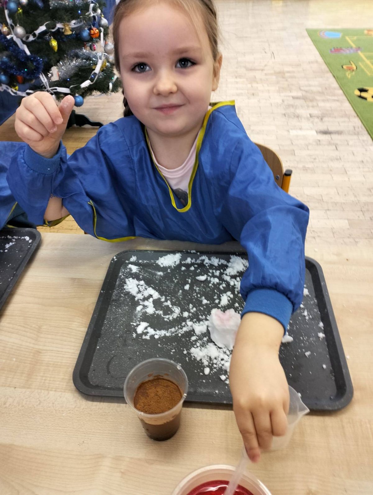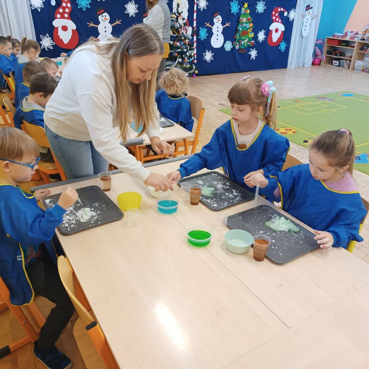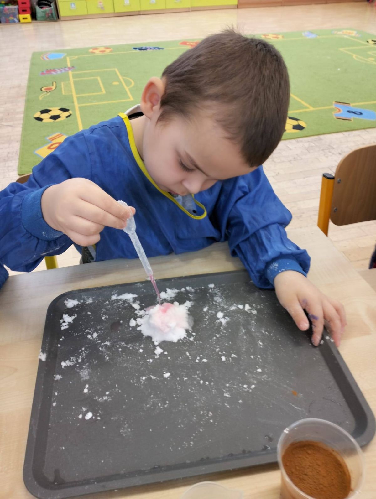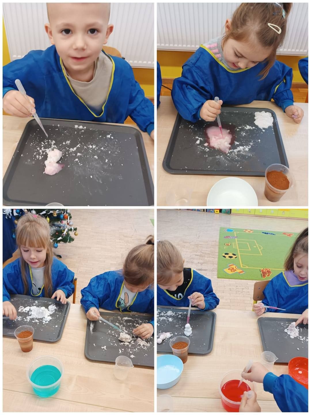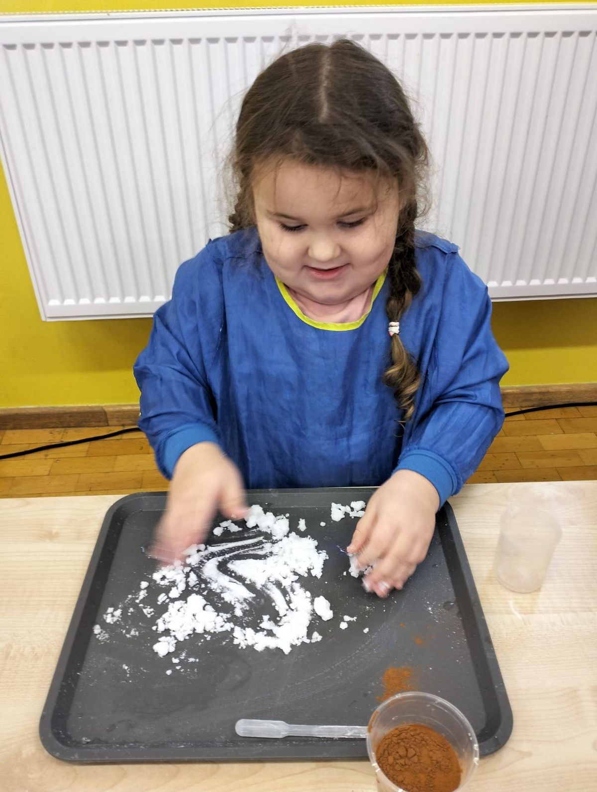 Warsztaty miały charakter edukacyjno-eksperymentalny – uczestnicy samodzielnie tworzyli śnieg z bezpiecznych materiałów, m.in. z sody oczyszczonej. Było dużo radości, zaciekawienia i nauki przez zabawę.