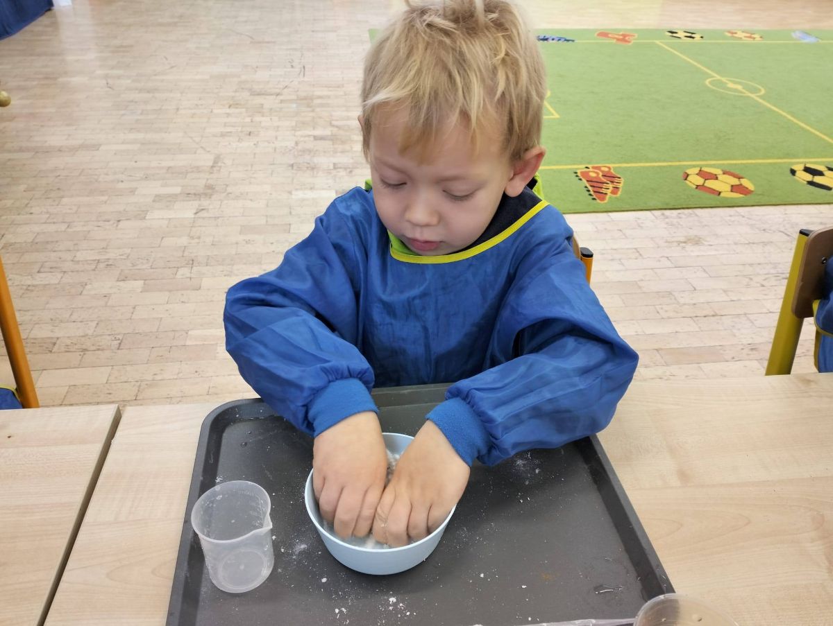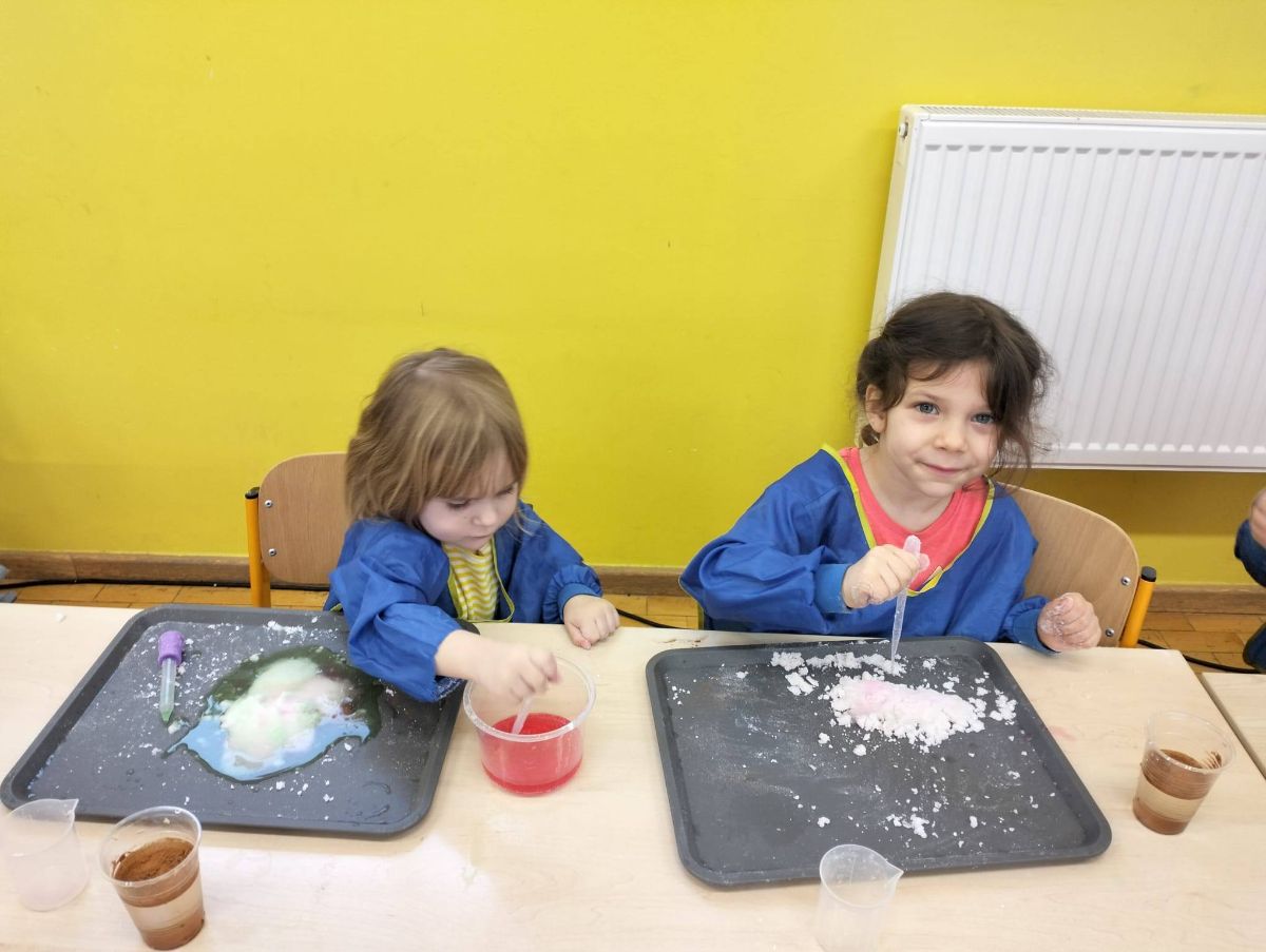 Za nami kolejne ciekawe warsztaty! Tym razem dzieci wzięły udział w zajęciach „Sztuczny śnieg”, podczas których mogły poczuć się jak mali naukowcy.